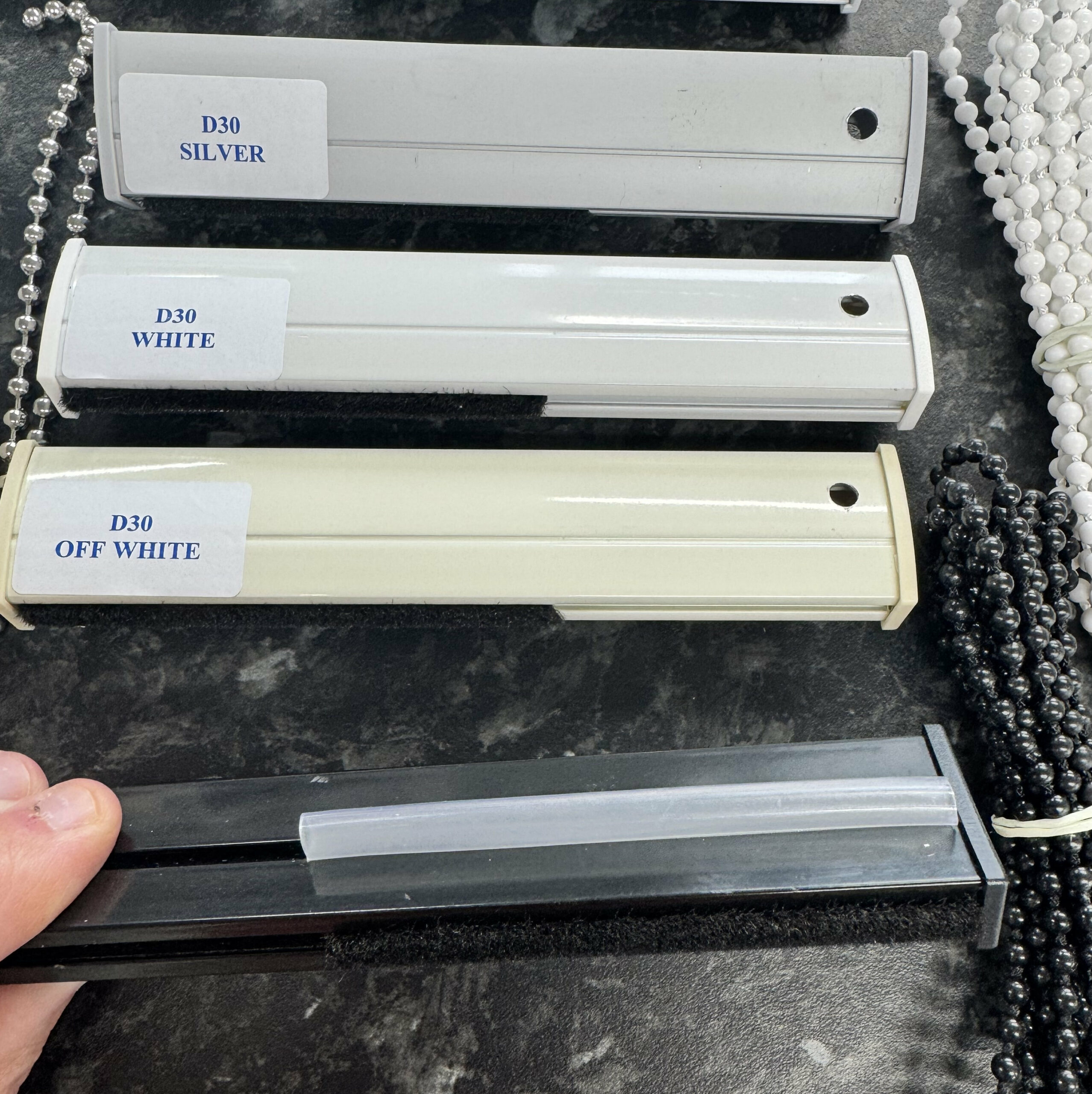 D30 bottom rail options Your D30 bottom rail you have selected can have the following attachments, please select which ones you would like